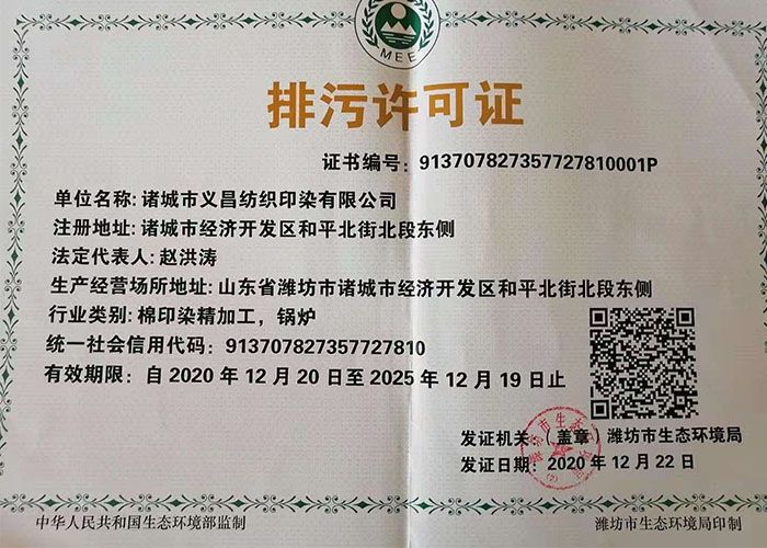 諸城市義昌紡織印染有限公司                              通訊地址:山東諸城市開發(fā)區(qū)和平北街北段東側(cè)